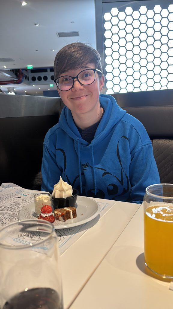 We chose to get the Half Board meal plan which gave us breakfast at the hotel as well as one meal per day in the park. This took some stress out of planning when and where to eat and worrying about the cost of each food stop as we were going around the park. We tended not to buy too many snacks as the breakfast was all-you-can-eat, and several of the dining options in the park are too. We tried PYM Kitchen for an all-you-can-eat lunch. It offered a good variety of food but some of it was a bit bizarre. We would not be in a rush to go back there. For the second day we had a sit down meal at Walt’s which was very nice, although don’t bother with the mac and cheese, that was very disappointing.