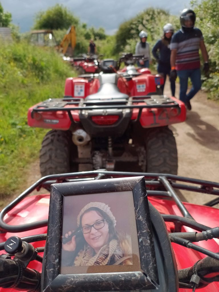 We were led out onto the course. It starts with a very steep uphill. The first one to try it nearly toppled over. The course started slow and winding. It meant that our large group was constantly stopping and starting to let the ones ahead negotiate the bends. It wasn’t long before I became bored rigid with the course. The stop-start meant that you couldn’t get a feel for how to really ride a quad bike. I would have preferred a few long straight bits to get used to it before the winding track. It had a lot of challenges, big bumps and steep downhill slopes. The thought amongst us was that they choose the winding path to keep it slow. Maybe this middle aged woman has a touch of the boy racer inside her. Watch out if you go on a dry day. The track is dusty and, to put it very bluntly, you will have grey snot for a while afterwards.