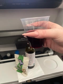 Complimentary drinks were offered soon after we stabilised at altitude. I had red wine, but there were a variety of options to include; soft drinks, juice, water, beer and white wine. I did do a mid flight cheers to Amy whilst I was up there.
