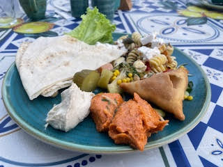 Food was at the restaurant Cheesecake Factory, which is not just cheesecakes, as per my original thought! I had Mediterranean kebabs which were very nice.