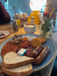 First stop after security was for coffee/food/water (in that order)! We went to Giraffe for breakfast, a well-known airport chain. No complaints there, I had a large breakfast, which definitely set me up for the day.