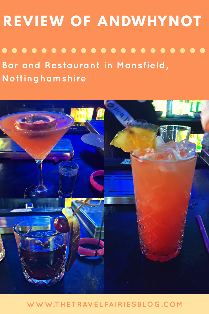 A few weeks ago, I had the pleasure of attending an old friend from schools hen do. We were to have dinner then attend a cocktail making masterclass at andwhynot in Mansfield. Despite it being in my hometown, I had actually never been to this bar/restaurant so I wasn’t really sure what to expect. I was very pleasantly surprised by the whole experience! Now Mansfield isn’t really a tourist hotspot so it unlikely that many travelers will visit but maybe you’re visiting friends or family, or maybe just got lost on your way to Nottingham but Mansfield has a pretty lively nightlife scene so it’s definitely worth checking out if you’re into that. If you ever do find yourself in Mansfield at a loss for what to do I highly recommend visiting andwhynot.